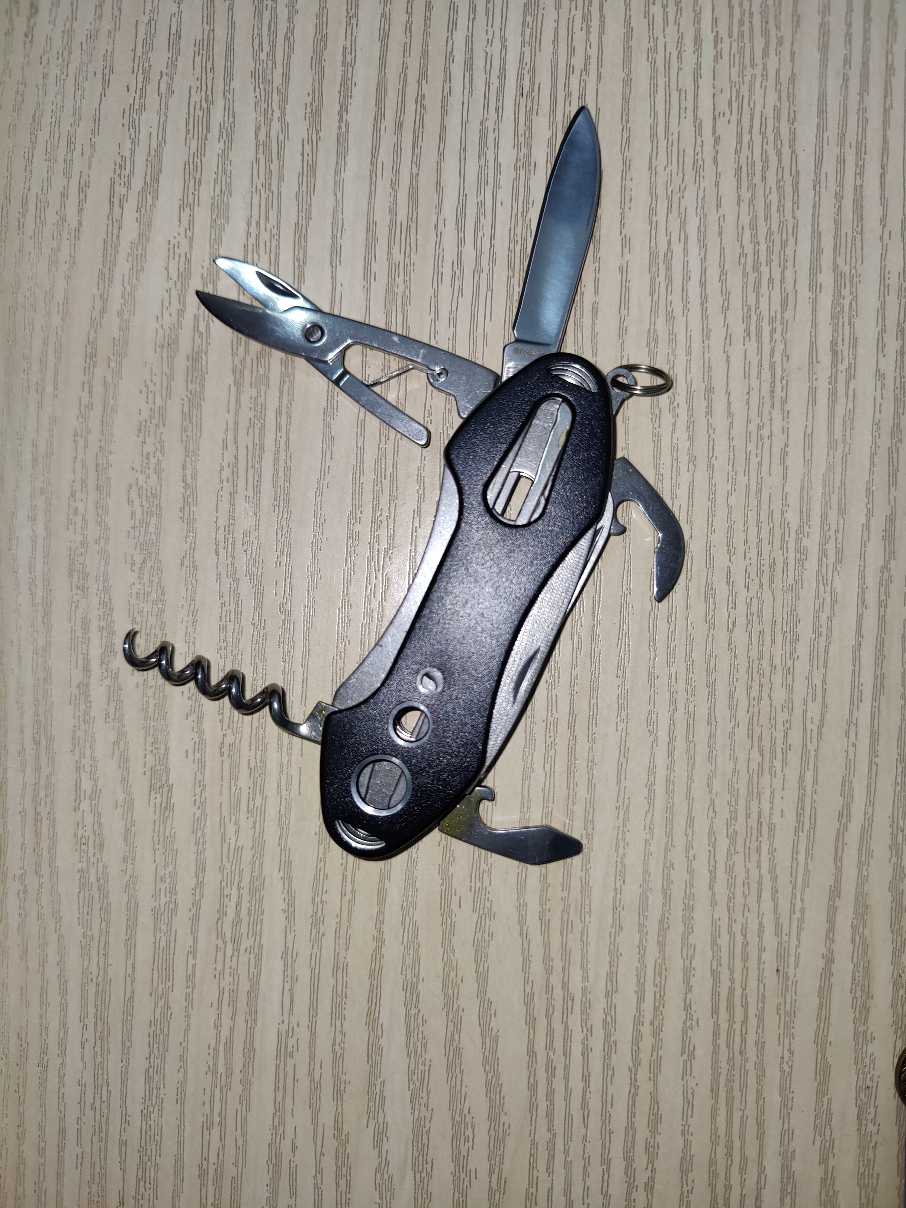 Багатофункціональний ніж Grand Way 05924 має той перелік інструментів і пристосувань, який покликаний задовольнити всі потреби під час туристичного походу, пікніка або іншого активного відпочинку. Всі пристосування ховаються в порожнистих ручках ножа. До їх числа входять: • Ніж з гладким заточуванням; • Ніж з серрейторним заточуванням; • Пила; • Ножиці; • Відкривачка для пляшок та консервів; • Кільце для підвісу. Всі інструменти виготовлені з нержавіючої сталі 420. Це відпрацьована у виробництві сталь з невеликим вмістом вуглецю. Інструменти з цього матеріалу міцні та гнучкі, а твердості цілком вистачить для виконання побутових завдань. Рукоятка складного ножа Гранд Вей 05924 виконана з використанням алюмінієвих плашок. Має зручну і практичну конструкцію, легко лягає в руку і комфортна при тривалому використанні.