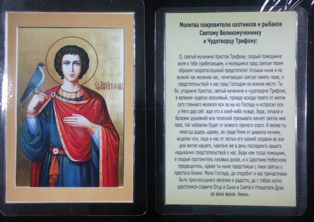 <p>Икона 6*9см с молитвой св.Трифону (ламинат)</p><p>Св.Трифон-покровитель охотников и рыбаков</p>